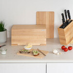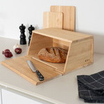 Durch optimale Belüftung bietet der große Brotkasten langanhaltende Frische der Backwaren. Klappe aufgeklappt als Schneidebrett nutzbar. Platzsparende Form - die Oberseite kann als Ablage genutzt werden.
