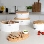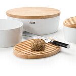 Der praktische Brottopf von Continenta aus weißer Keramik passt mit seinem hellen Holzdeckel in jede Küche. Das Brot bleibt darin lange frisch, dafür sorgen die seitlichen Belüftungslöcher. Die Rückseite des Deckels ist nicht nur zum Verschließen des Topfes gedacht, es hat eine zweite Funktion und dient als Brotschneidebrett.